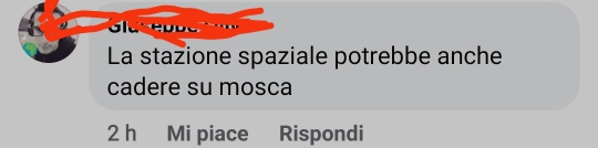 Sotto un post di Facebook riguardante la notizia, lanciata dalla Russia, di una ipotetica caduta della Stazione Spaziale Internazionale (ISS) a causa delle sanzioni che stanno colpendo la società statale russa che si occupa dei rifornimenti tramite navicelle, sono apparsi commenti del calibro: “Cadrà sul Cremlino”, Sulla Russia”, “La stazione spaziale potrebbe anche cadere su Mosca”, “Cade sul Cremlino”, “Magari casca in testa a Putin” e un addirittura “Speriamo sopra Montecitorio”. I commenti sono ancora lì, visibili a tutti, senza censura.